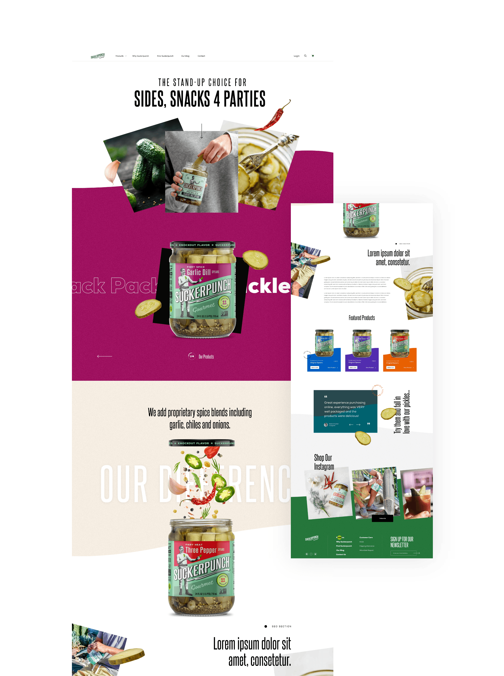 For this project color was a key element in the design, it was our tool to visually convey the explosion of flavors that you experience when you try SuckerPunch.